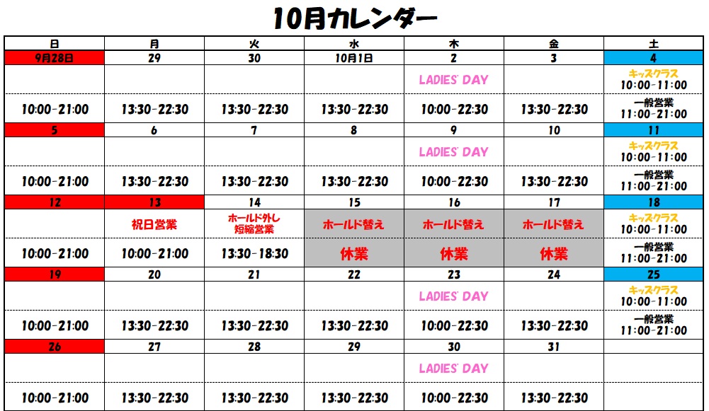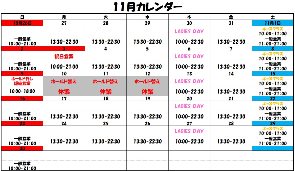 毎週木曜日(祝日は例外)はロング営業(10:00-22:30)にレディースデイです!
